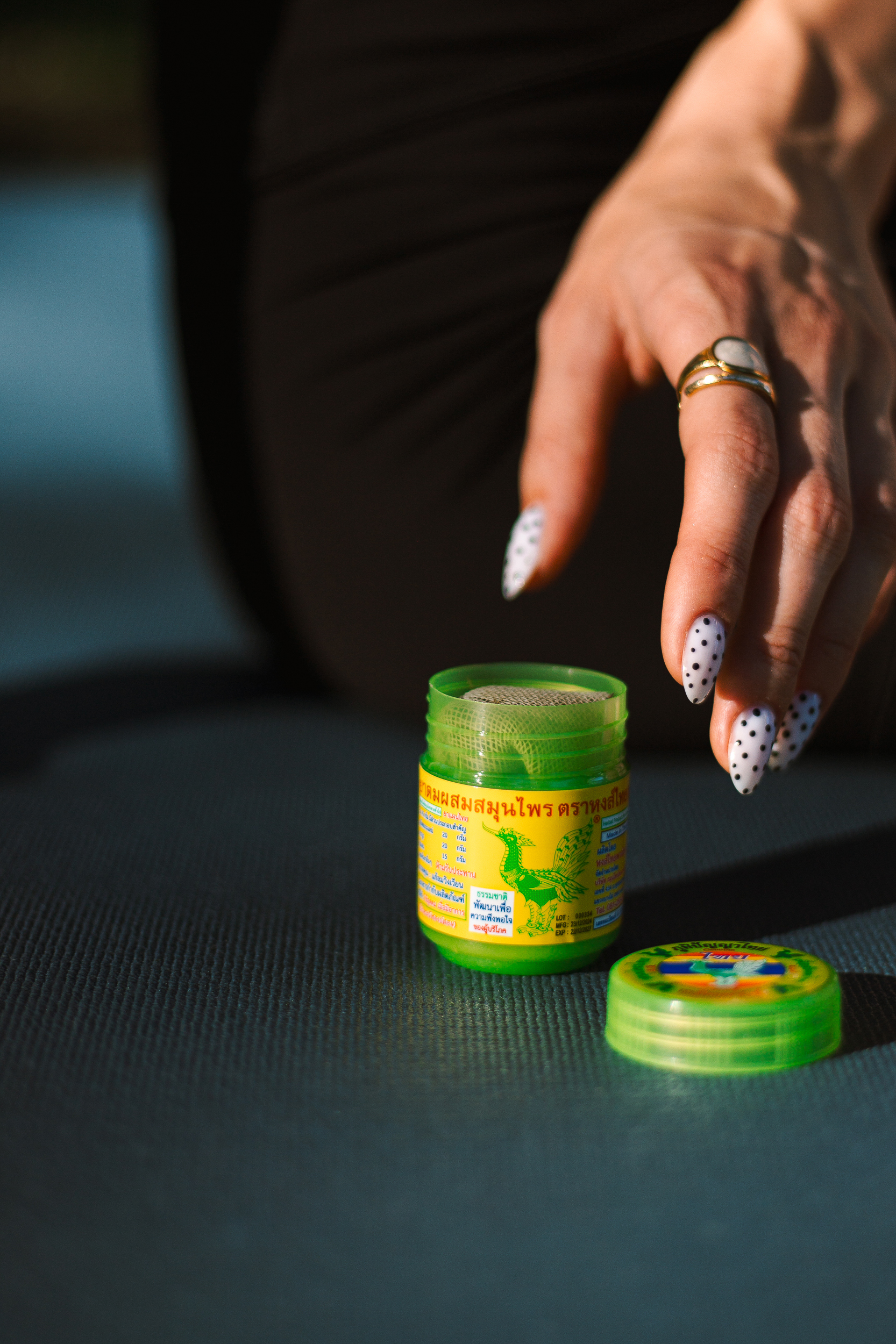 Menthol, Kafr (Camphor), Eukalyptový olej, Borneol a směs více než 15 tradičních thajských bylin.
